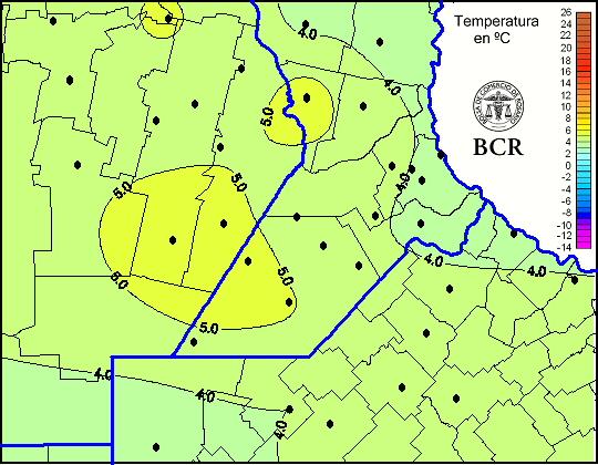 Mapa de temperaturas mínimas de las últimas 24 horas.