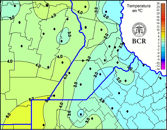 Mapa de temperaturas mínimas de las últimas 24 horas.