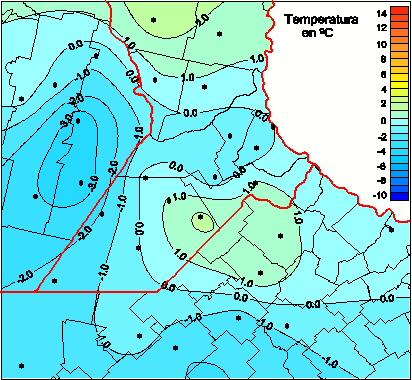 Mapa de temperaturas mínimas de las las últimas 72 horas.
