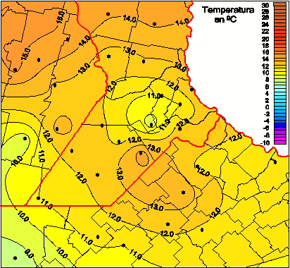 Mapa de temperaturas mínimas de las las últimas 72 horas.