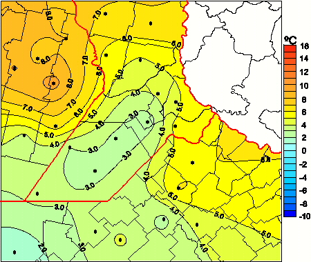Mapa de temperaturas mínimas de las las últimas 48 horas.