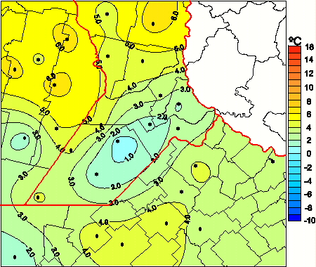 Mapa de temperaturas mínimas de las las últimas 72 horas.
