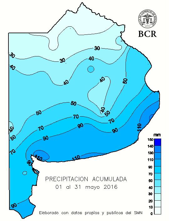 A esta altura del año pasado, había agua en profundidad pero a pesar del ambiente de alta saturación, no se producían las tan necesarias precipitaciones para la cama de siembra. Esta vez, la oferta de agua y el ambiente de saturación se han mantenido hasta hace poco. Señalamos debajo las lluvias de mayo en la provincia de Buenos Aires para ilustrar esto. Recién en estas últimas semanas se ha instalado una masa de aire frío y seco que está permitiendo reacomodar los lotes, permitiendo de vuelta la transitabilidad de las maquinarias, y esto es muy importante para sostener la posibilidad de sembrar la cobertura de intención de siembra proyectada en 4,7 M de ha.