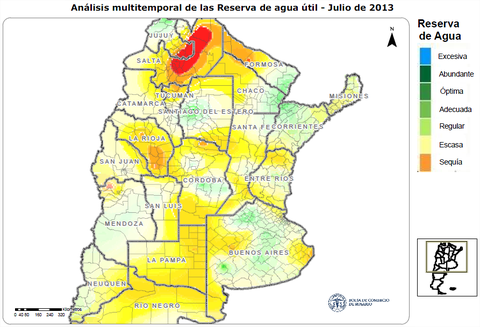 Reserva de agua en el suelo Julio 2013 versus julio 2012: