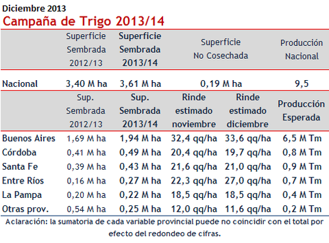 Con un pequeño ajuste en superficie respecto de la anterior estimación, se agregaron 70 mil hectáreas en la provincia de Entre Ríos, tomando para esta área los datos producidos por el SIBER de la Bolsa de Comercio de Entre Ríos, se ajusta en 3,61 millones de hectáreas que se han sembrado se espera que se cosechen 3,42 millones.