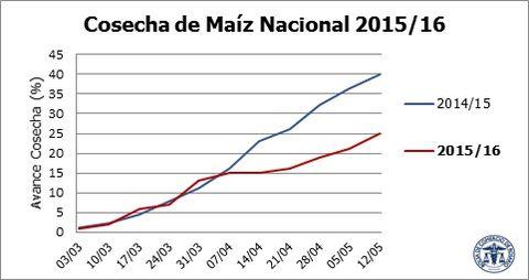 Los retrasos en la soja dejaron a las labores de cosecha de maíz con un retraso de 15 puntos respecto de la campaña pasada, por lo que se lleva cubierto sólo el 25% del área maicera cosechable. El progreso de las labores de cosecha develará en qué grado fueron afectados tanto los maíces tempranos como los tardíos con los recientes sucesos. Se esperaba un gran nivel productivo en los cuadros sembrados en diciembre, pero ahora empiezan a surgir las dudas por los efectos del temporal de abril.