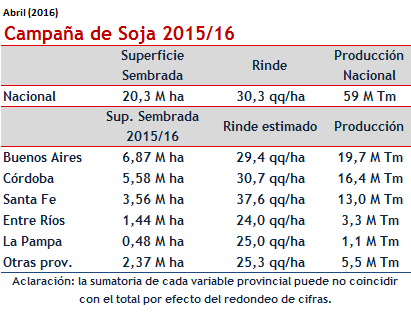 En el cuadro que sigue se muestran los datos estimados detallados por provincia, mientras que para Entre Ríos se utilizan los datos de SIBER (Bolsa de Cereales de Entre Ríos).