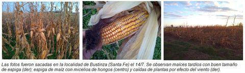 Las precipitaciones fueron de poca significancia en Bigand el fin de semana pasado. 'El maíz tardío todavía se sostiene pero cada vez mas aumenta la cantidad de plantas con vuelcos desde la base y/o quiebre cerca de la base complicando así su recolección' profundizan los especialistas con preocupación. 'La calidad del grano es sumamente afectada cuando vuelca la planta ya que la espiga entra en contacto con el suelo. Allí la humedad es excesiva y las temperaturas son favorables para el brotado del grano de maíz o empieza a deteriorarse por efecto de hongos y ardido'. La humedad del grano que se logra recolectar varía de 17 a 20%. El 70% del maíz tardío está cosechado. En cuanto a rendimiento promedios se arrojan cifras de 95 qq/ha, en un rango de 75 a 120 qq/ha. Mientras que el maíz de segunda lleva el 50% cosechado y no logra superar al tardío en rinde: obtiene 80 qq/ha, con extremos de 70 y 90 qq/ha. 'La cosecha viene demasiado lenta ya que tenemos problemas de terreno, vuelco y también inconvenientes con los caminos' cuentan preocupados los técnico. El eje del problema es el exceso de agua. 'Se han presentados casos donde se cosechó con doble tracción dentro de lagunas provocando así un intenso amasado del suelo. Sin otra alternativa, necesitaban levantar la cosecha por cuestiones económicas' detallan. Respecto al cultivo de trigo, 'esta la posibilidad de que hagan algún lote más porque hay existencias de semillas de ciclo corto pero de ocurrir otra lluvia de 15 a 20 mm la superficie triguera quedaría similar a la campaña pasada o 5% más' analizan El avance de siembra de trigo comprende el 97%. Los lotes destinados a trigo que no pudieron sembrarse representan un 5% del total intencionado. Los lotes que emergieron se encuentran en muy buenas condiciones. Las labores de siembra de cebada están culminadas. La baja en su superficie de siembra respecto al año anterior alcanza un 30%. El perfil hídrico del suelo es adecuado en los primeros centímetros, mientras que en profundidad se encuentra saturado.