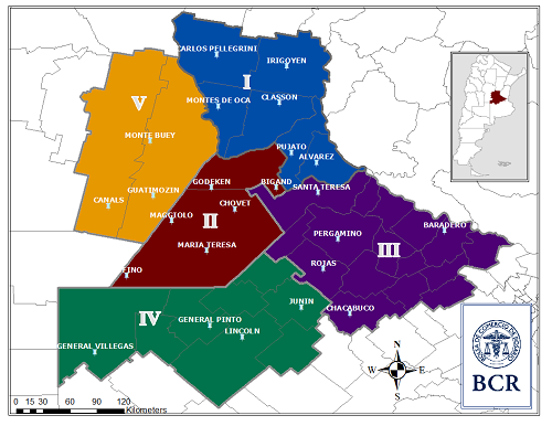 El 90% de los lotes de maíz temprano se los considera con las mejores calificaciones en la zona de Marcos Juárez. Las estimaciones indican promedios de 115 qq/ha, con máximos que podrían tocar los 160 qq/ha El maíz de primera estaría listo para cosecharse los primeros días de marzo. Las lluvias permitieron completar la floración e inicio de llenado de los maíces traídos y de segunda sin sufrir hídrico. En cuanto a la oleaginosa, “las últimas lluvias llegaron en el momento justo, impidiendo que tengamos pérdidas de rendimiento”, comentan los agrónomos, “permiten completar el ciclo de soja de primera”. Sin embargo, hubo lotes bajos anegados que se van a computar como perdida de área. La mayor parte de los lotes de soja temprana están llenando granos. Las de segunda se las encuentra desde iniciando la formación de vainas a comenzando la formación de las semillas. El 85% de la soja de la región se la califica entre excelentes y muy buenas condiciones. Se estima un rinde promedio de soja de primera de 45 qq/ha.