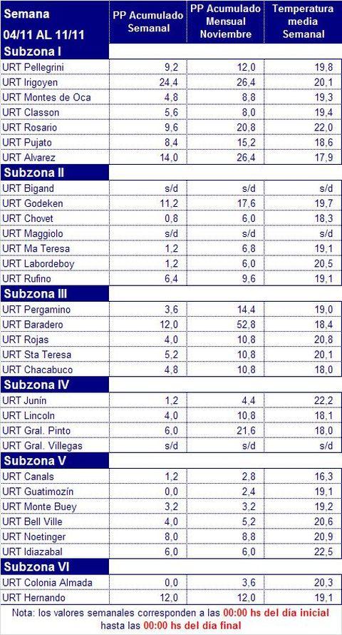 La semana comprendida entre el jueves 11 y el miércoles 17 de noviembre comenzará con condiciones estables en toda la región GEA. La presencia de un sistema de alta presión sobre toda la zona central del país, inhibe el desarrollo de precipitaciones e incluso el desarrollo de nubosidad. Se prevé que durante el fin de semana, las condiciones se mantengan estables, pero con un importante ascenso de temperatura en toda la región, debido especialmente a la escasa nubosidad y la importante circulación del viento del sector Norte en las capas bajas de la atmósfera, lo que no solo permitirá el incremento de los registros térmicos sino que además contribuirá con un aumento del contenido de humedad sobre toda la región GEA. A partir del lunes, las condiciones se irán inestabilizando dado que un sistema frontal frío que avanzará sobre la región se combinará con las condiciones cálidas y húmedas en toda la zona, permitiendo el desarrollo de precipitaciones en forma de chaparrones y tormentas de variada intensidad, que se mantendrán hasta el miércoles inclusive. El comienzo del próximo periodo se producirá con un mejoramiento de las condiciones en toda la región, un moderado descenso de los registros térmicos y una rotación del viento al sector Sur.