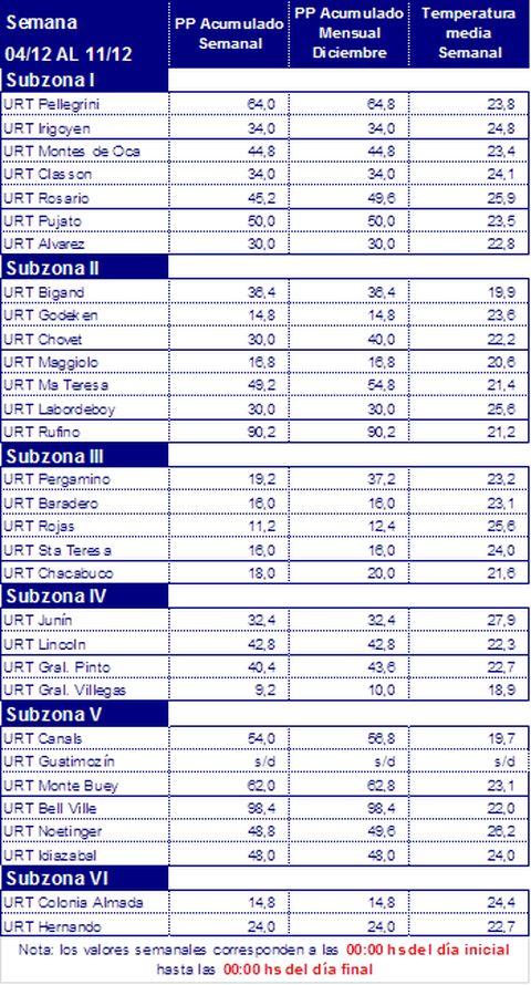 La semana comprendida entre el jueves 12 y el miércoles 18 de diciembre comienza con la presencia de un sistema de alta presión que genera condiciones de tiempo estable, con escasa nubosidad, temperaturas elevadas y viento leve de direcciones variables. La semana estará caracterizada por las elevadas marcas térmicas que afectarán a todo el centro del país, con valores de temperaturas extremas, debido a la llegada de la primera ola de calor intensa que afectará el país, y en particular la zona GEA. Esta situación se mantendrá a lo largo de toda la semana, interrumpida por algunas tormentas aisladas, que se generarán debido a las elevadas marcas térmicas y al importante contenido de humedad que estará presente sobre la región. La zona con la mayor probabilidad de desarrollo de precipitaciones es la provincia de Córdoba, donde las condiciones de inestabilidad serán muy importantes, especialmente durante el fin de semana. Hay que destacar dos aspectos de las características de las tormentas que se prevén para esta semana, por un lado, las mismas serían de corta duración, pero por otro lado, por las características de la atmósfera, las mismas pueden ser intensas, pudiendo desarrollar granizo sobre la zona y ráfagas intensas de viento. Los fenómenos también serán aislados, debido a que se irán desarrollando dentro de la masa de aire cálido y húmedo, por lo que luego de las lluvias no se espera que descienda la temperatura, sino que por el contrario se mantenga o aumente en algunos casos. La circulación del viento será intensa y prevalecerá del norte a lo largo de todo el período. Esto también favorecerá el incremento de la temperatura y de la humedad en las capas bajas, manteniendo las condiciones con gran inestabilidad a lo largo de todo el período.