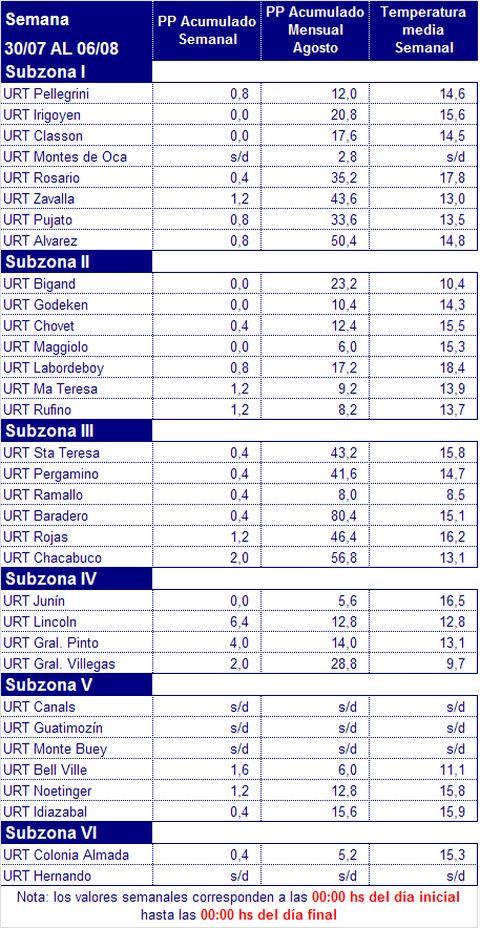 La semana comprendida entre el jueves 7 y el miércoles 13 de agosto comenzará con el ingreso de una masa de aire frío y seco. Luego del pasaje de un sistema frontal frío, que dejó algunas lluvias aisladas, el viento rotó al sector sur y permitió el descenso térmico en toda la región GEA. Las condiciones durante el jueves 7 se mantendrán estables, con escasa cobertura nubosa y viento prevaleciente del sector sur. La semana en general se presentará sin lluvias con temperaturas que serán levemente por encima de lo normal, si bien habrá oscilaciones de las marcas térmicas, en general, se mantendrán relativamente constantes, y el promedio de la semana de análisis dará como resultado valores levemente más elevados que los parámetros habituales para la época del año. Si bien al comienzo de la semana el viento prevalecerá del sector sur, se prevé que rápidamente rote al sector norte, por lo que las temperaturas se recuperarán rápidamente en toda la región GEA. Otro aspecto a destacar es la humedad en las capas bajas de la atmósfera, ya que en el inicio de la semana será muy escaso, pero con la rotación del viento al sector norte comenzará a incrementarse velozmente y si bien irá aumentando la inestabilidad sobre la región central del país, no se prevé que se desarrollen precipitaciones, aunque si habrá un aumento significativo de la cobertura nubosa, especialmente hacia el final del período de análisis.