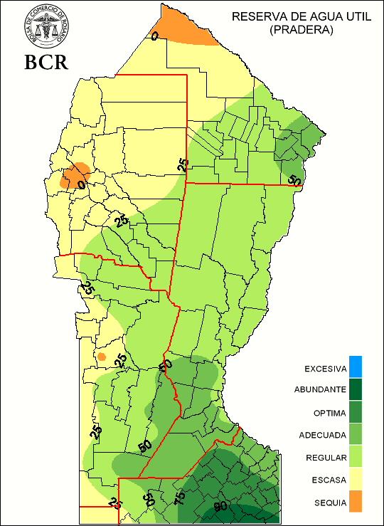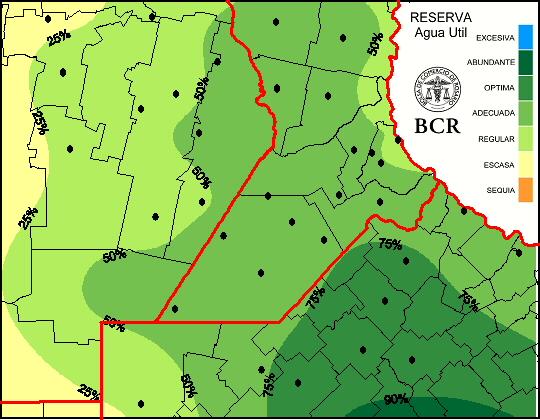 Las reservas hídricas en toda la región GEA no se han modificado demasiado en los últimos días. Con escasas lluvias, pero también con bajas marcas térmicas, no hubo gran aporte de agua ni pérdida humedad a lo largo de los últimos 7 días. Para los próximos 15 días no se necesitan lluvias para mantener las buenas reservas hídricas. Solo sobre Córdoba, con registros de 30 a 50 mm se alcanzaría el nivel óptimo.