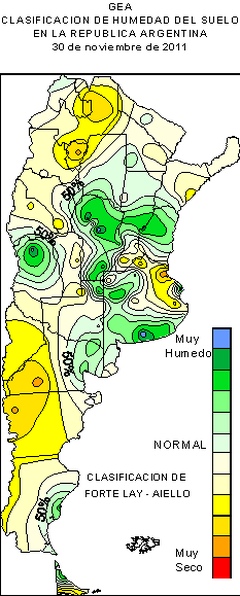 Las lluvias de esta semana resultaron muy heterogéneas con intensas tormentas en la zona núcleo, algunas acompañadas con granizo como en sur de la provincia de Santa Fe, o como en las inmediaciones de San Antonio de Areco. Los acumulados varían significativamente entre el centro-oeste y la franja norte, donde hubo zonas con lluvias que superaron los 50 mm, y la franja este de GEA, donde los montos fueron inferiores a los 5mm. Destacamos los 83,6 mm que se midieron en Noetinger (Córdoba) seguido por Canals (también Córdoba) con 61,6 mm. El resto de la región recibió precipitaciones en promedio entre 15 y 25 mm. Se mantiene la tendencia de mejoramiento de las condiciones edáficas en toda la región GEA que se presentó desde el mes de octubre y noviembre.