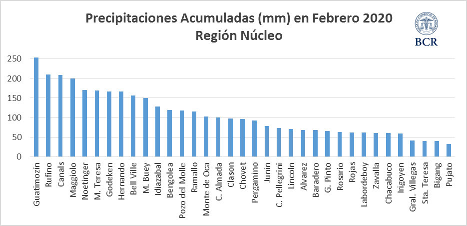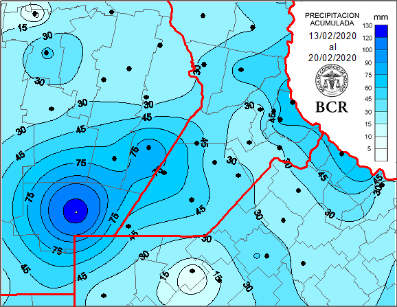 El golpe tambien ha caído en las sojas de primera en esa área dejada de lado por las lluvias y en muchos lotes estiman ahora un rinde promedio de 35 qq/ha. Las lluvias resultaron oportunas, pero llegaron tarde donde no llovió la semana pasada. Aparte las lluvias han sido muy erráticas en las áreas donde más hacían falta y dejan una campaña muy irregular. La condición depende mucho de cuanto agua recibió en febrero y de la calidad del lote y el manejo.