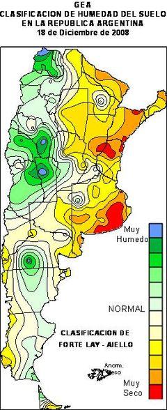 Reserva de agua útil pradera al 18/12/2008 Seleccione la imagen para ampliarla | Reserva de agua útil en maíz al 18/12/2008 Seleccione la imagen para ampliarla | Reserva de agua útil en soja al 18/12/2008 Seleccione la imagen para ampliarla |