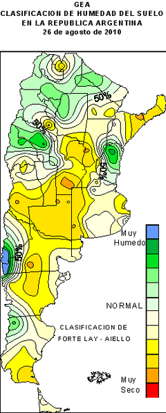 Porcentaje de agua útil disponible para el cultivo de trigo al 26/08/2010.