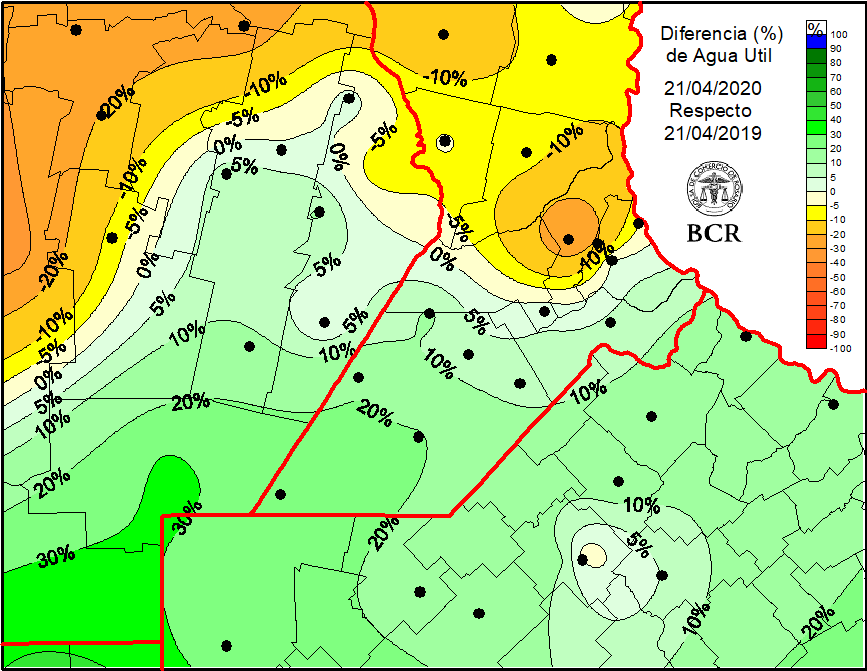 Uno de las variables claves de la siembra de trigo 2020/21 son las lluvias. En un año dónde es tan importante tener éxito productivo hay buenas noticias. La primera es que la siembra triguera arrancará con mejores condiciones que hace un año, ya que las reservas de humedad muestran una diferencia a favor en el 70% del área. La segunda buena noticia tiene que ver con el regreso de las lluvias. Tras el buen tiempo que viene acompañando el veloz desenvolvimiento de la cosecha, hay pronósticos de tormentas que dejarían acumulados muy importantes en la región en los próximos días. En la semana agrónomos de Rosario y Bigand señalaban que con las reservas que hay actualmente en los suelos, hasta los dos metros, obtendríamos trigos de 20 a 25 qq/ha. ¿Cuánta agua hace falta entonces? Los modelos coinciden con los ingenieros, que señalaban la falta de 100 mm en las zonas más deficitarias, como se muestra en la imagen.