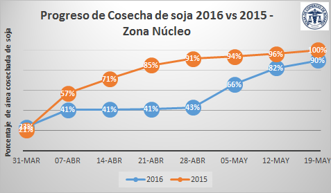 A esta altura del año, la cosecha de soja solía ser un capítulo viejo y la calidad no era un tema importante. En esta campaña, la calidad sí importa, y todavía resta por cosechar el 10% de la soja de primera en la región. La diferencia de rinde es de 8 qq/ha (43 qq/ha en 2015 vs 35 qq/ha en 2016). De cara a la nueva campaña invernal, el año pasado ya había una clara tendencia del área de siembra de trigo; este año el escenario es difuso. Quedan los lotes huelleados, enmalezados o directamente con soja sin cosechar que no dan lugar a la nueva campaña triguera. Estos factores no sólo generan un retraso en el inicio de la campaña 2016/2017, sino que reducen el entusiasmo por sembrar que había antes del temporal. La relación de precios entre cultivos también es un factor decisivo, por lo que el maíz apunta a ser el gran protagonista en la siembra de la próxima temporada.