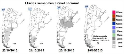 Las lluvias que ingresan a la región amenazan con temporales que poco tardan en diluirse. La deuda de milímetros sigue pendiente. Hasta ahora cayeron sólo 45 mm de los 100 que se esperan de las estadísticas de octubre. Los pronósticos dan lluvias aisladas el próximo lunes o martes. Lejos de aquellas previsiones que señalaban que no se iba a poder sembrar el maíz, el efecto Niño empezará a influir -como suele hacerlo- de fin de octubre a principios de noviembre. El mes de octubre también se caracterizó por un inédito frío, quedando en 5°C por debajo de las temperaturas mensuales promedios del año pasado. Las siembras de soja, comenzaron tímidamente en la región, avanzando un 5%. Algunas semillas presentan el poder germinativo demasiado justo y junto a las condiciones frías forman una 'mala yunta' que acecha a la emergencia. El maíz se desarrolla lentamente mientras que al trigo, el frío le sienta de maravilla. Frenó las enfermedades y prolonga la fase de llenado augurando buenos rindes.