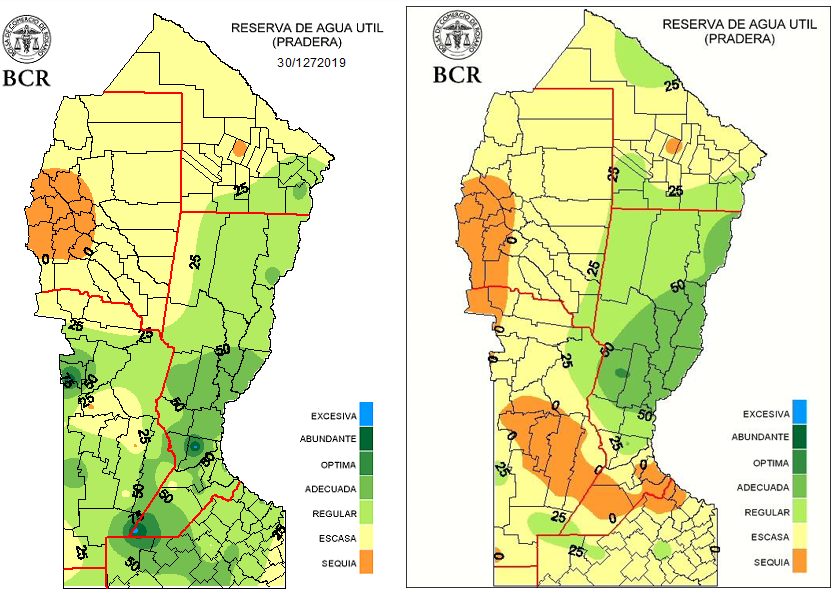 Desde el 19 hasta el 30 de diciembre, las lluvias acumuladas en la franja central se acercan o incluso ya superan las medias mensuales de diciembre que están en el orden de los 80 a 150 mm. En toda la provincia de Córdoba hubo lluvias superiores a los 50 mm, superando los 100 mm en el 30% de su territorio, justo en la zona más deficitaria cómo se destacaba hace un mes. Pero tambien hubo localidades afectadas negativamente dónde en pocas horas la gran cantidad de milímetros provocó inundaciones cómo en Jesús María. En el sur de Santa Fe gran parte del área acumuló de 100 a más de 150 mm. El norte bonaerense de este a oeste tiene un gradiente creciente que arranca en los 50 mm y termina con más 100 mm. Una porción muy acotada del norte de la Pampa recibió más de 50 mm. Pero del centro de Buenos Aires hacia el sur es otro cantar, las lluvias estuvieron por debajo de los 25 mm y se profundiza la necesidad de agua.