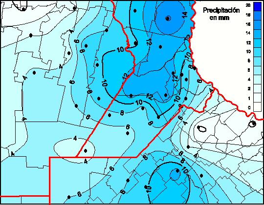 Mapa de precipitación acumulada en las últimas 24 horas.