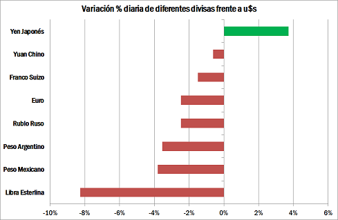 Sin embargo, el libreto cambió totalmente ante la aparentemente sorpresiva resolución del electorado de avalar la salida de la Unión Europea. No discutiremos aquí los motivos ni las implicancias políticas y económicas tras dicha elección – con certeza inciertas hasta para los votantes. La reacción inicial de los mercados accionarios y de monedas a nivel internacional ha sido propia de un evento tan improbable que calificarlo de cisne negro no estaría fuera de lugar.