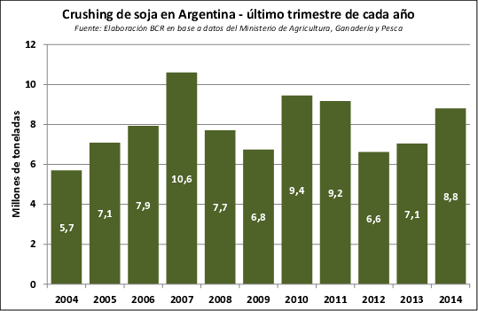 Pese a que aún ralos, los primeros lotes de soja 2014/15 han hecho su aparición en el mercado local apuntalando las expectativas que en breve la oferta de poroto nuevo comience a hacerse más fluida. Frente a ello, la disposición a pagar de los compradores mengua, lo cual es potenciado por el contexto internacional donde la oleaginosa no deja de desvalorizarse.