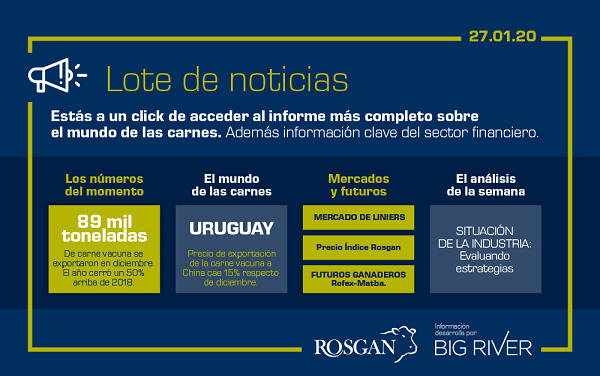 A diferencia de lo esperado, la desaceleración de compras por parte de China aún no se manifiesta en los registros de diciembre. Durante el último mes del año China compró unas 72.450 toneladas equivalente carcasa, un 5% más desde las 69.230 toneladas de noviembre pasado. Sin embargo, en materia de precios, el valor promedio de ventas reportadas en diciembre resultó en USD 4.247 por tonelada lo que representa una caída de más de un 20% en relación a los USD 5.389 por toneladas conseguidos en noviembre.