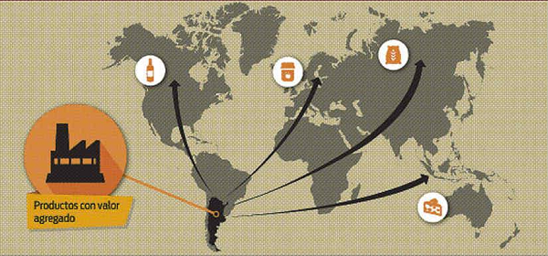 Los cinco complejos más relevantes en dicho año fueron la soja (21% del valor agregado total de las cadenas), bovinos (12%), maíz (10%), trigo (10%), lácteos (10%) y avícola (6%); entre estos cinco suman más del 60% del total del valor agregado de las cadenas.